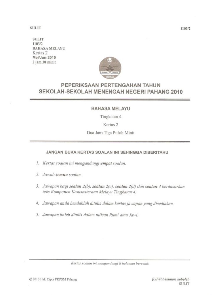 Ujian Pertengahan Tahun Bahasa Melayu Kertas 2 Tingkatan 4 Pdf